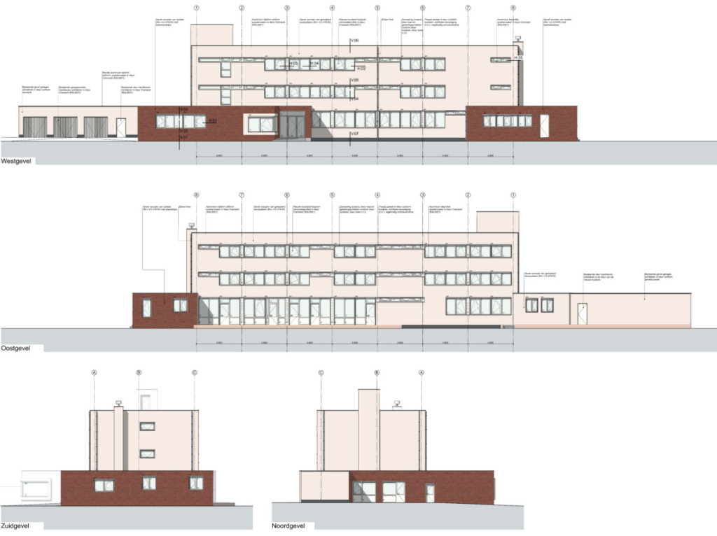 Ten behoeve van de nieuwe plattegrond-indelingen zijn, waar nodig, bestaande gevelopeningen aangepast. Om het gebouw energetisch aan te laten sluiten bij de huidige normen is de gevel aan de buitenzijde voorzien van gevelisolatie en voorzien van gevelstukwerk en steenstrips, qua kleur aansluitend bij de bestaande omliggende bebouwing.