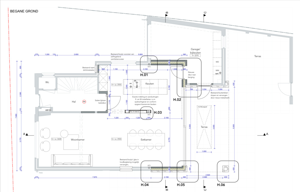 De wens van de opdrachtgever was om een aanbouw achter de woning te creëren en de plattegrond van de woning een opener en luchtiger uitstraling te geven.